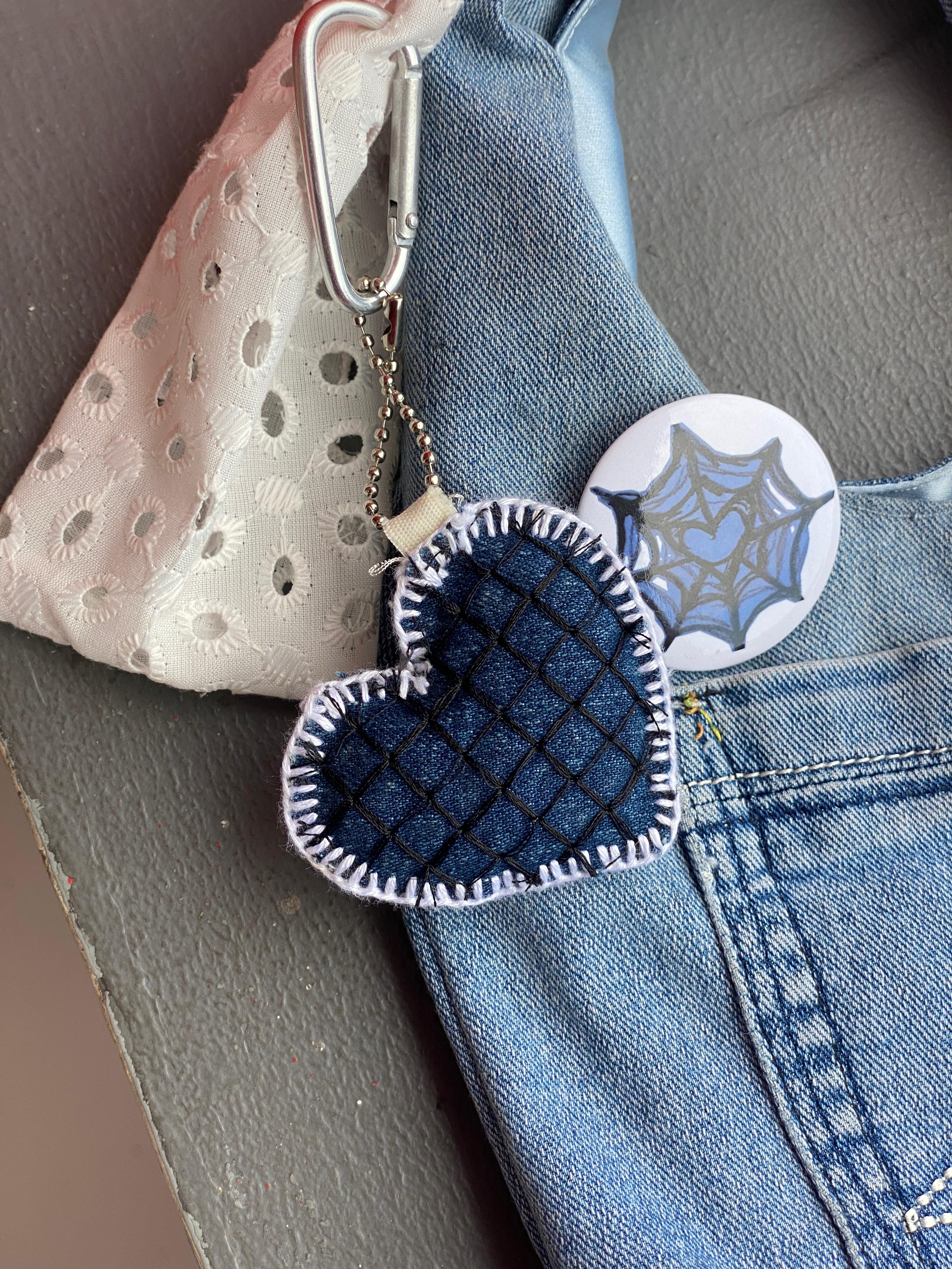 Keychain handmade dari kain donasi yang sudah melalui proses rework.